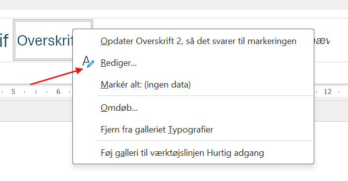 - Vælg en af dine typografier i toppen af dit Word-dokument. Det kunne fx være Overskrift 2.