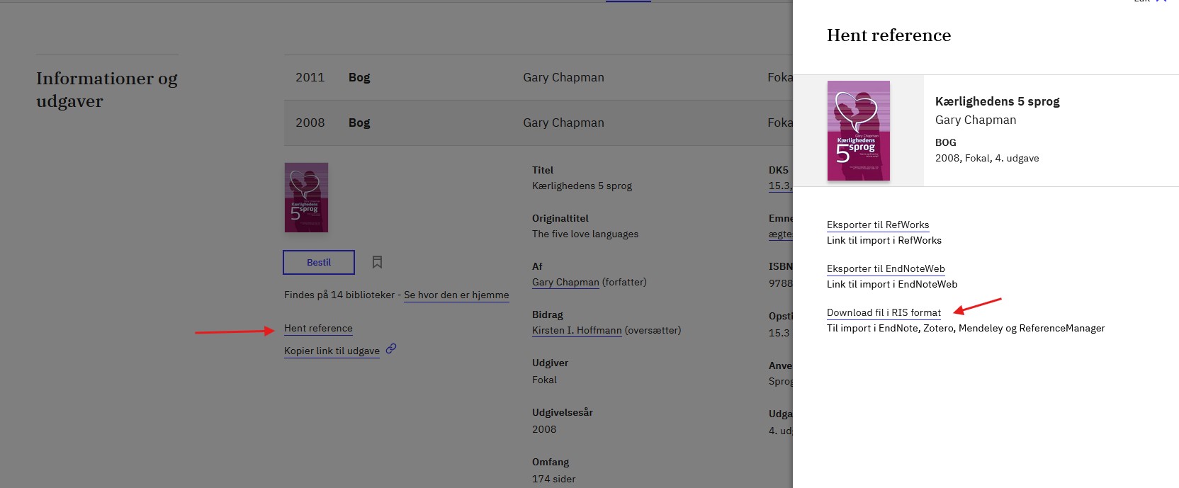 På Bibliotek.dk kan du søge efter et ISBN nummber og åbne det søgte værk. I bunden af siden fremgår der forskellige udgaver. Her bruger jeg Kærlighedens 5 sprog.