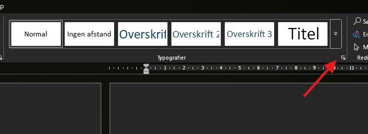 - Tryk nu på den meget lille pil, som står ved de forskellige skrifttyper i Word. Den åbner et nyt vindue.