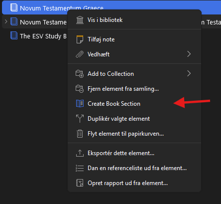 - Vælg “Tilføj bogsektion” (“Create Book Section” på Engelsk)
