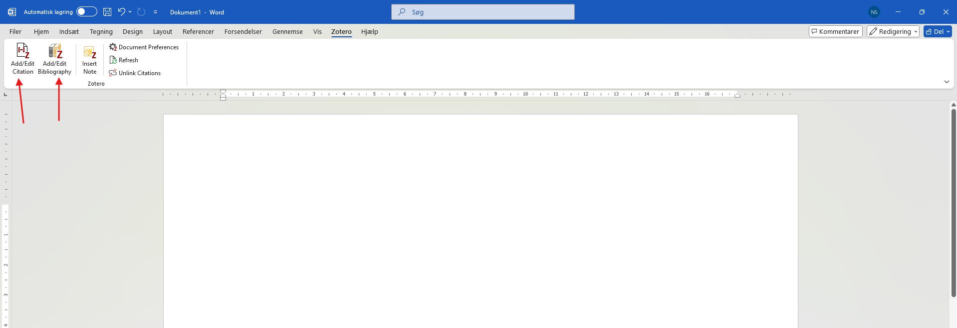 Sørg først for at Word er helt lukket. Så vil Zotero-pluginet automatisk blive installeret.